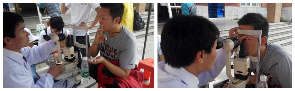 正午时分,一位高大帅气的老师来到现场求助,他是上海交通大学的篮球队教练,率队前来中南大学参加中国大学生篮球超级联赛,下午就有重要赛事,在这紧急关头却遭遇眼疾,经工作人员认真检查后诊断为患急性出血性结膜炎,给出初步处理建议并嘱咐进行眼局部冷敷,注意适当休息,必要时前往专业眼科医院做进一步检查治疗。