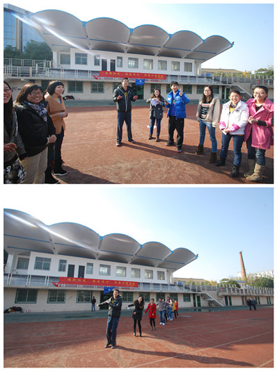 暂别久日的湿冷,温暖的阳光欢快的播撒在体育场的每一个角落,怀着对活动的热切期待,同学们早早的来到了活动现场。学院辅导员郭爱华老师引导大家暂时放下自身所承担的社会角色,如学生的角色、子女的角色,父母的角色、老师的角色等等,全身心地投入游戏中,把自己想象成天真无邪的孩子,仔细领会每一个阳光活动环节所带来的感受,并与学院刘杰老师一同参与游戏,与同学们一起共享活动乐趣。
