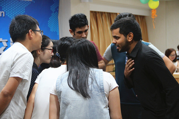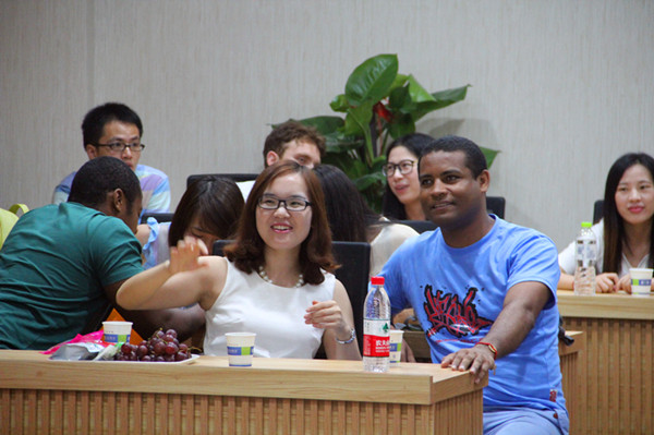 交流会从轻松欢快的音乐声中开始,主持人苏珊珊幽默可爱的讲话,博得全场学生欢快大笑。轮“滚雪球”英语自我介绍快速消除了中外学生间的陌生感,其中有三位留学生更是大方地展示了个人才艺,给大家留下了深刻印象。