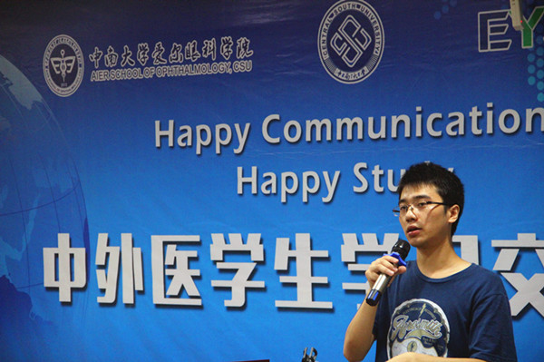 2015年7月17日下午,中南大学爱尔眼科学院、爱尔眼科医院集团科教中心、中南大学国际合作与交流处共同举办的“Happy communication&Happy study”中外医学生交流会在爱尔眼科医院集团总部顺利举行。本次交流会旨在激发爱尔学子对英语的学习兴趣,创造良好的学习交流平台,同时加强中外医学生之间的交流,并增进同学友谊、丰富课余生活。交流会吸引了近40名爱尔学子及15位来自世界各地的外国留学生前来参加,活动由爱尔眼科学院综合办与爱尔眼科医院集团科教中心联合策划,爱尔眼科医院集团科教中心苏珊珊和爱尔眼科学院2013级留学生阿德共同主持,中南大学国际合作交流处陈强老师出席并致辞。