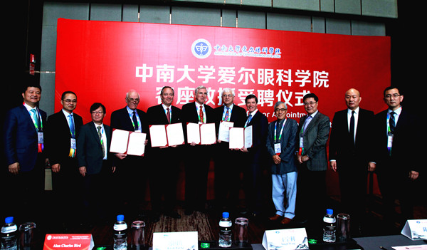 11月7日,2015国际视网膜高峰论坛期间,中南大学爱尔眼科学院向5位外国专家颁发了客座教授聘书,在爱尔眼科的专家“智库”中,新增了5位世界眼科学界鼎鼎有名的权威人物。这意味着爱尔眼科推动临床与教研相结合的工作又向前迈进了一步。