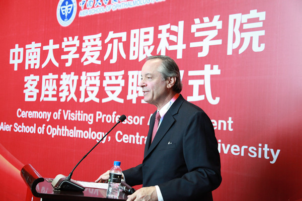 爱尔眼科医院集团董事长陈邦先生表示,今天聘请5位国外专家成为爱尔眼科学院的客座教授,是爱尔“智库”继杨雄里院士、苏国辉院士、王宁利教授、彭智培教授等9名海内外一流眼科专家加入后,又一次得到力量充实。5位专家不仅学术精湛,同时也是品德高尚、诲人不倦的医学教育家,他们的加入是爱尔乃至中国眼科教育的幸事,也坚定了大家进一步办好爱尔眼科学院的决心。