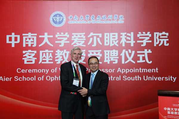 此外,2015年,还有两位外籍专家受聘为中南大学爱尔眼科学院客座教授,是来自美国Marshall B.Ketchum 大学的Susan A. Cotter教授和来自澳大利亚墨尔本大学的Jonathan G. Crowston教授,他们的研究方向分别是眼视光学及青光眼。