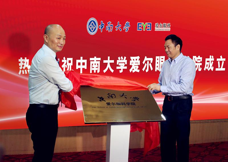 5月15日上午,中南大学爱尔眼科学院成立大会暨揭牌仪式在中南大学举行,中南大学校长张尧学院士和爱尔眼科医院集团董事长陈邦先生共同为学院揭牌。作为国内由著名大学与知名企业联合设立的眼科学院,这既是社会资本参与办学的具体实践,也是对医学教育改革的有益探索。