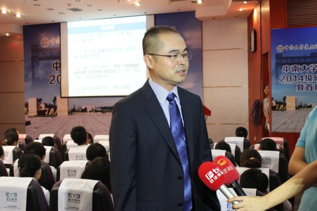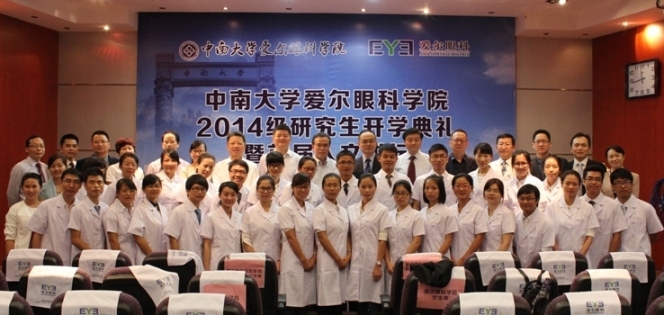 中南大学爱尔眼科学院2014级研究生开学典礼暨首届人文讲坛于9月30日在长沙爱尔眼科医院隆重举行。开学典礼由学院党委书记白毅先生主持,中南大学副校长张灼华先生、爱尔眼科医院集团总裁李力先生、爱尔眼科学院理事会理事长张跃文先生、爱尔眼科学院院长唐仕波教授、副院长杨智宽教授、刘光连教授、长沙爱尔眼科医院院长林丁教授等领导出席。