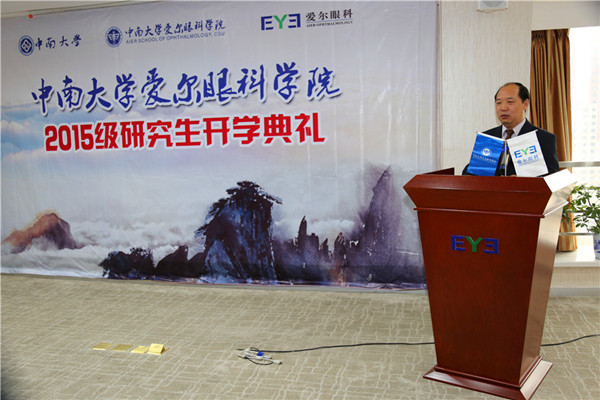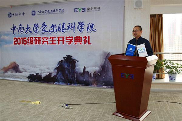 9月29日,中南大学爱尔眼科学院2015级硕博士研究生开学典礼在爱尔眼科医院集团总部隆重举行。典礼由学院党委书记白毅教授主持,集团董事长陈邦先生、集团总裁李力先生、学院院长唐仕波教授、副院长郭海科教授、爱尔眼科医院集团湖南省CEO张艳女士、集团各职能部门领导、学院2013、2014级学生代表以及2015级全体硕博士研究生参加。