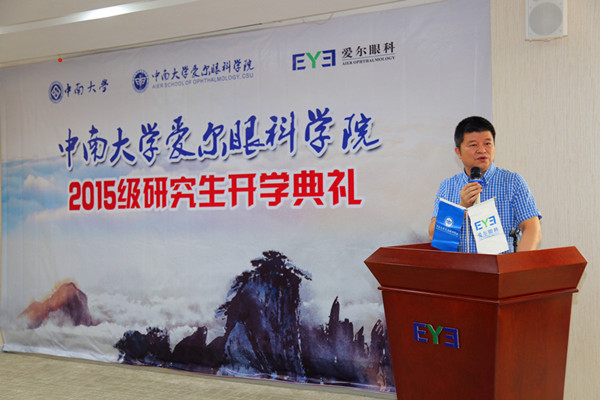 唐仕波院长在致辞中介绍了爱尔眼科学院的师资情况和技术力量,并强调作为爱尔眼科学院培养的高质量人才,每一名研究生在勤学钻研、锤炼医术的同时,更要把“为患者解决痛苦,送去光明”的爱尔精神发扬光大。