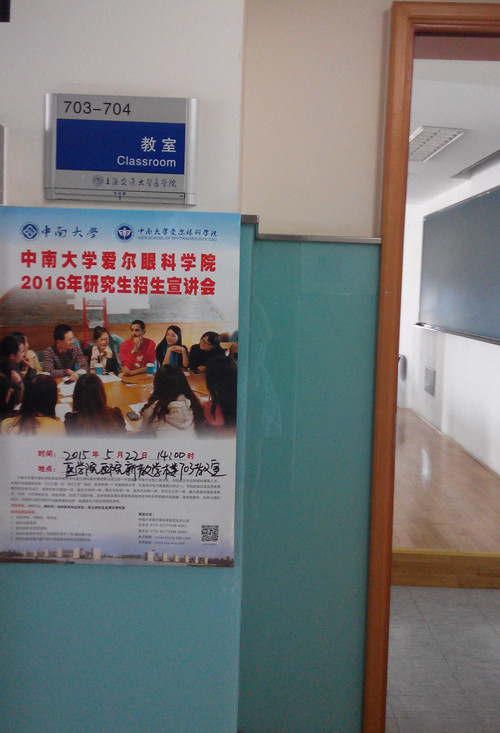 2015年5月19日,中南大学爱尔眼科学院2016年研究生招生宣讲会全国巡讲第七站来到深圳,在深圳大学附属医院顺利进行。