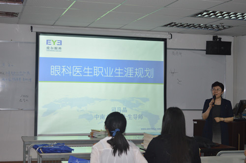 深圳爱尔眼科医院孙喆院长介绍了爱尔眼科医院集团的发展现状、未来发展规划以及人才培养战略,为同学们带来了医疗改革下全新的执业发展机会。