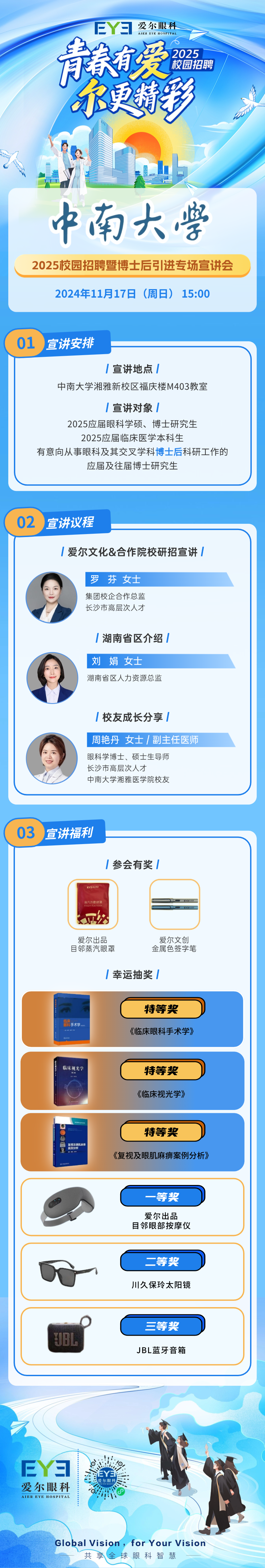 宣讲会|爱尔眼科×中南大学校园招聘暨博士后引进专场宣讲会